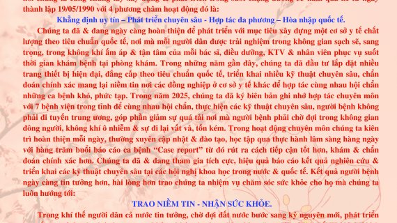 Nhân dịp đầu xuân năm mới, thay mặt ban lãnh đạo công ty và phòng khám. Ts.Bs ,Lê Lệnh Lương có thư chúc mừng năm mới toàn bộ CBNV đã và đang làm việc tại phòng khám những năm qua.